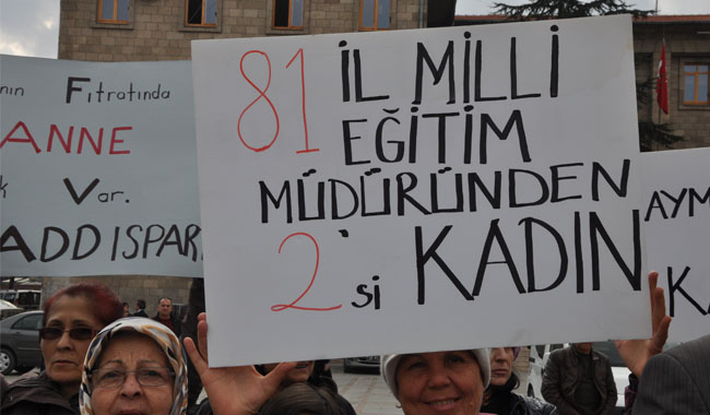 Törende “Kadının fıtratında Anne olmak var” yazılı dövizler de taşındı.
